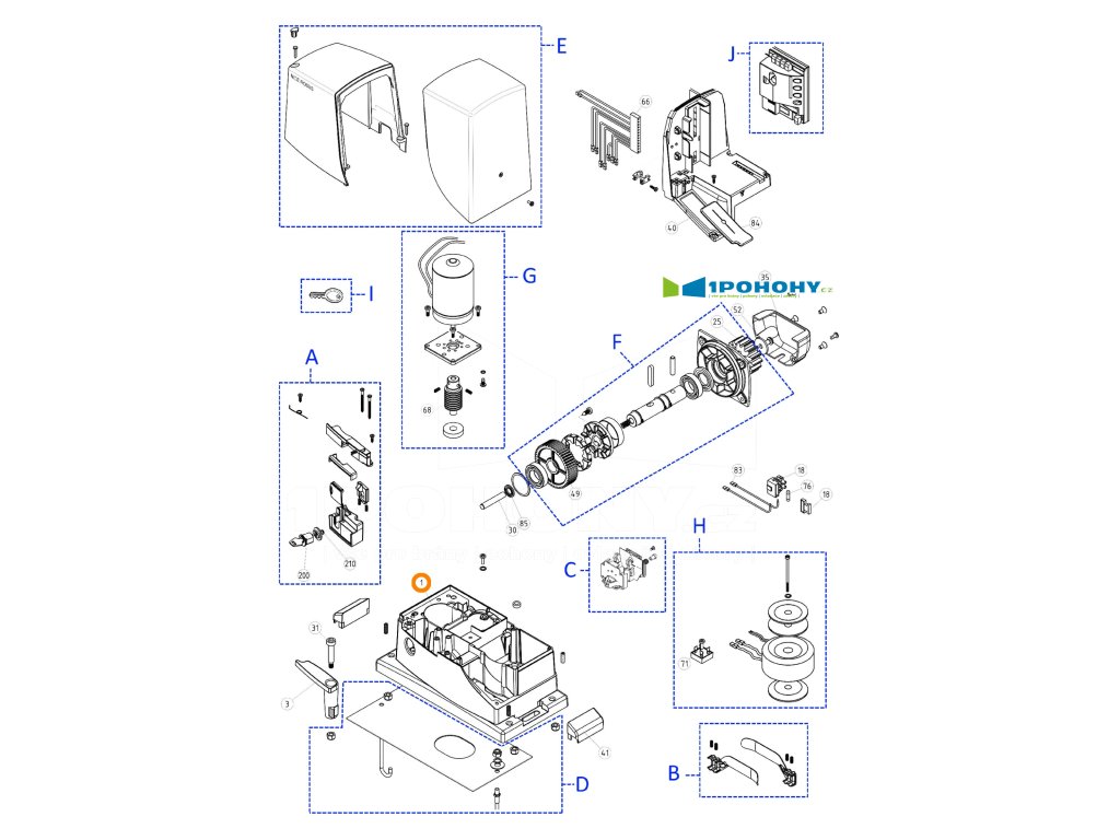 Nice BMG0907R07.45673 je náhradní tělo (korpus, karter) pohonu posuvné brány Nice RB600, Nice RB1000, Nice ROX600, Nice ROX1000
