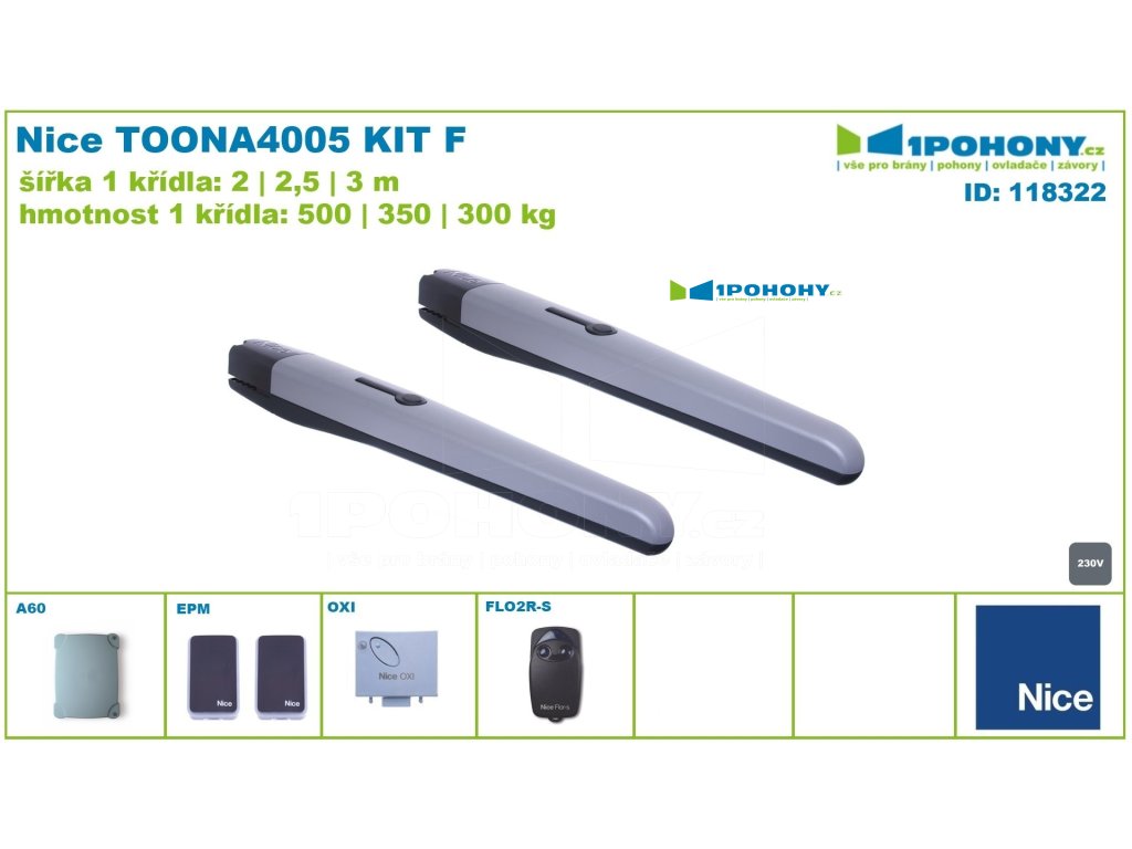 Kategorie: | Pohony křídlových bran Nice do 6,00 m průjezdu |