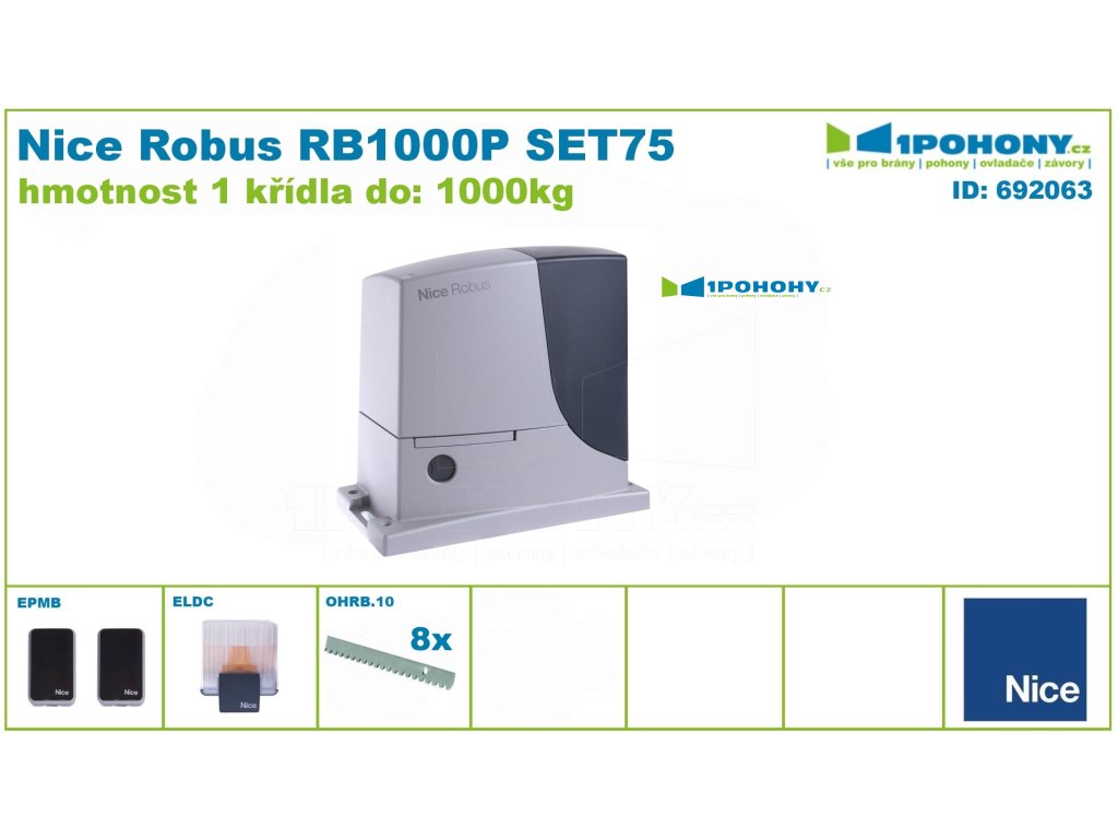 RB1000P SET75 sada pohonu posuvné brány Nice Robus 1000P s hřebeny do 7.50 m bez dálkového ovládání